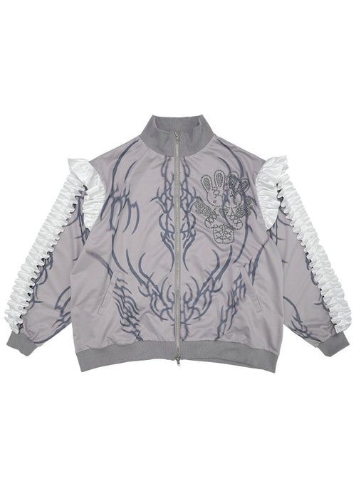 Nightmare Studded Bunny Ruffle Grey Oversized Jacket