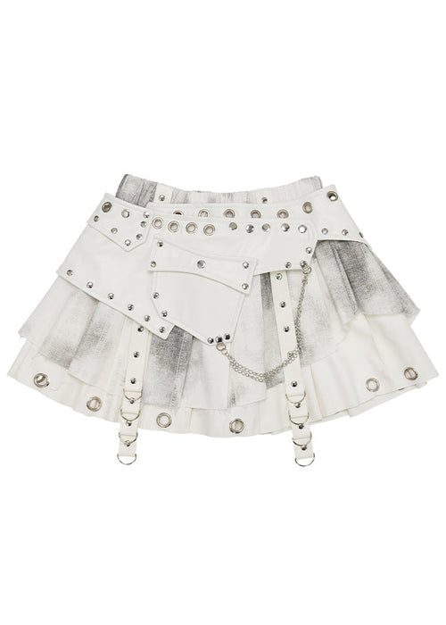 Nightmare White Leather Pleated Skirt