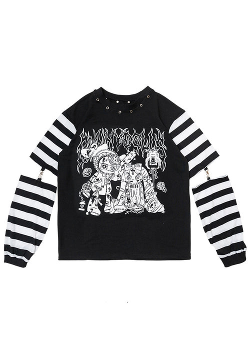 Bunny Dolls Punky Bunny Black White Long Sleeves Oversized Tee