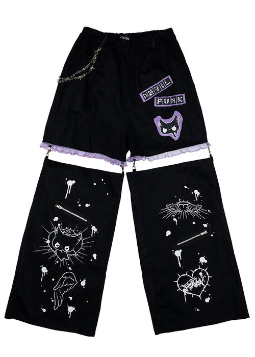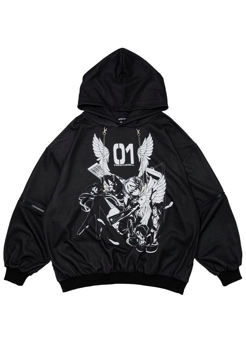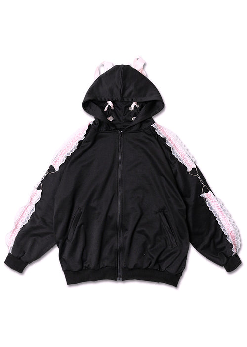 Love Punk Lace & Ribbon Black Pink Oversized Zip Up Hoodie