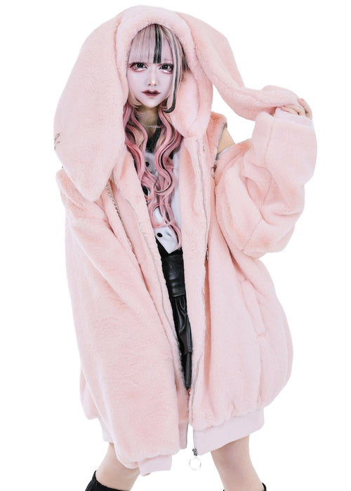 PSYNXX Bunny Ear Faux Fur Pink Oversized Jacket